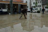 A chuva também causou dificuldades aos expositores no primeiro dia do certame, que viram os seus espaços inundados, devido aos problemas de escoamento da Praça Camões.
