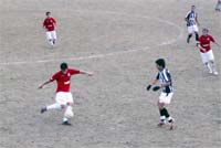 Aos 5’, Adriano abre o marcador no desenvolvimento de um lance de bola parada, mas a excelente reacção local manteve a boa estrutura defensiva e a luta a meio campo.