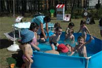 O primeiro dia de “praia” na piscina montada pela instituição contou com a participação de 14 crianças de dois anos de idade, que se mostraram felizes enquanto se divertiam. Após saírem da água, a pequenada aproveitou para fazer algumas brincadeiras na areia, recorrendo às pás e baldinhos que se utilizam na praia.