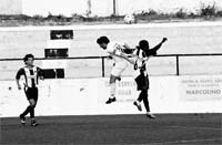 Jogo no Estádio de S. Sebastião, em Mirandela, tarde de sol e calor abrasador típico, muita assistência e relvado quase bom
