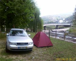 Tendas à porta do parque de campismo