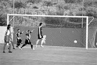 Aos 34’, uma mão na defensiva forasteira evita o golo. Uma infracção que ficou sem castigo.